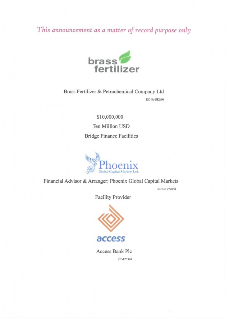 We are proud to have partnered with Brass Fertilizer & Petrochemical Company Ltd and Access Bank Plc on this landmark transaction, which demonstrates the power of effective collaboration in unlocking value and driving sustainable development.